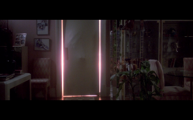 Movies also play with the idea of doors as symbols of safety - or not. Protagonists shut and bar doors to keep antagonists out, while filmmakers jack up the tension by focusing on what we can't see, but can often only hear, hidden behind a closed door. In Ghostbusters, the filmmakers use noises coming from behind a closed fridge door and light behind a closed apartment door (accompanied by the impressions of monstrous hands), to heighten the tension (below). In The Shining, Jack Nicolson hacks his way through a door, physically destroying the only thing that offers protection - all the more shocking for it's attack on the thing most of us think of as safe: a locked door.
